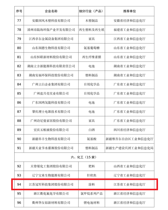 近日,國家工信部正式公布了“工業產品綠色設計示范企業(第三批)”名單,江蘇冠軍集團成功上榜,成為省內獲評企業中唯一一家涂料型企業。